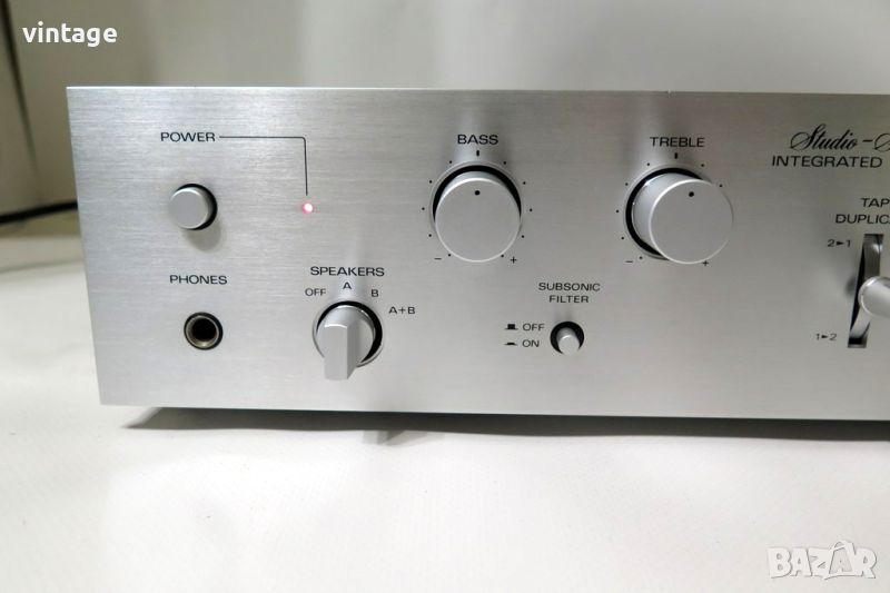 усилвател, отличен технически и визуално. Корекции: bass 100 Hz +/-10 dB, treble 10 kHz +/-10 dB, Loudness, Subsonic Filter. Много добър саунд! Приложените снимки са реални!
