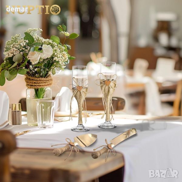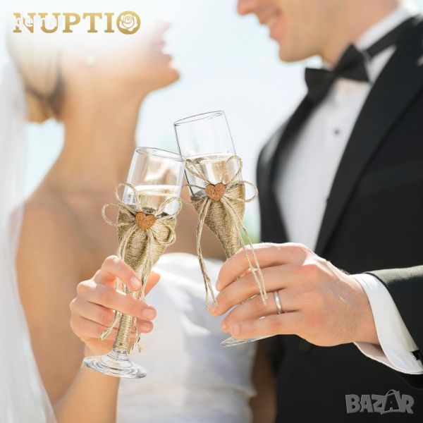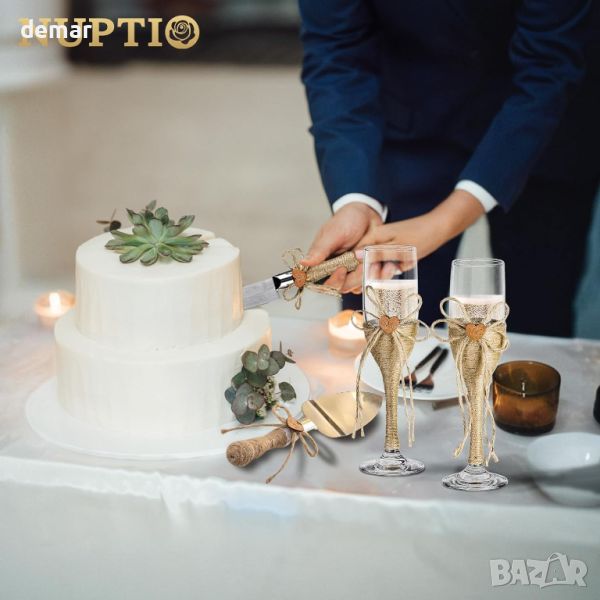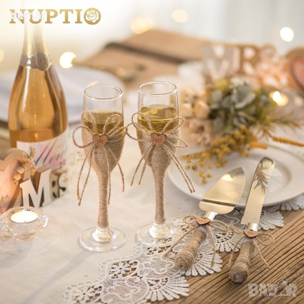 NUPTIO Сватбен подарък - чаши за шампанско, ножове за торта, персонализирана подаръчна кутия