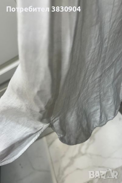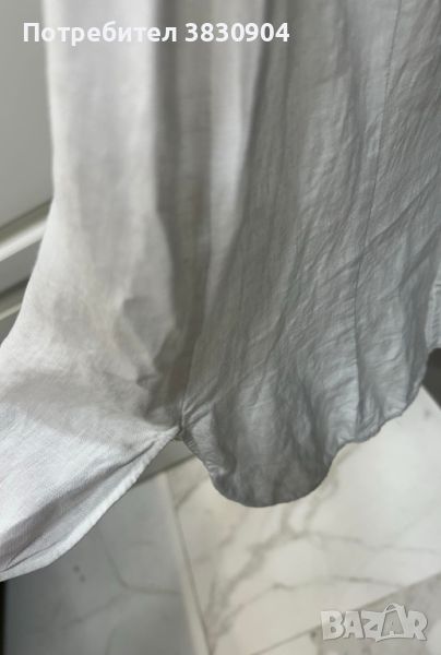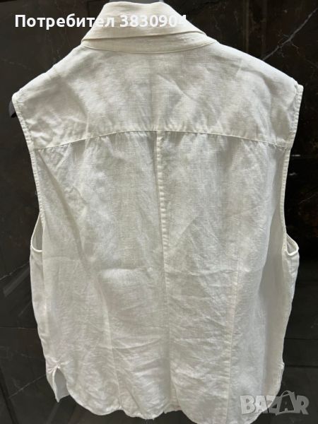 Цвят: бял. Състав: 100% лен.Бието за копчетата, около яката е 100%