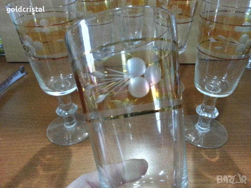 Ретро стъклени чаши за вино 6 бр -195лв кана 39лв лв неизползвани кристално калиево стъкло сервиз комплект сет лот ретро арт декор винтидж колекция стари антикварни предмети обзавеждане за дома и семейството подходящи за подарък за ценители и колекционери