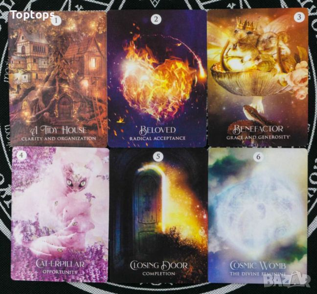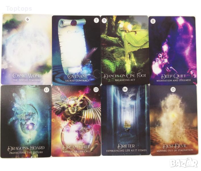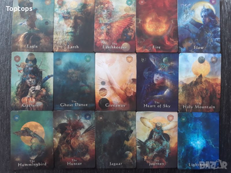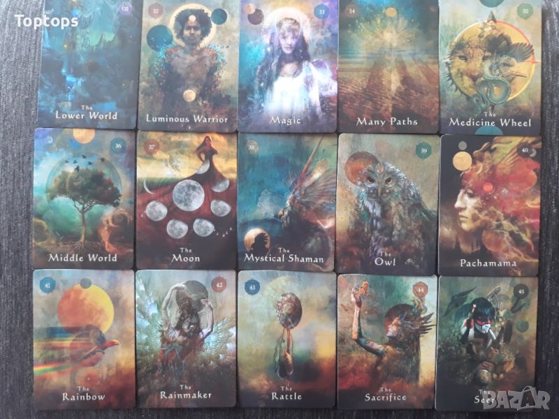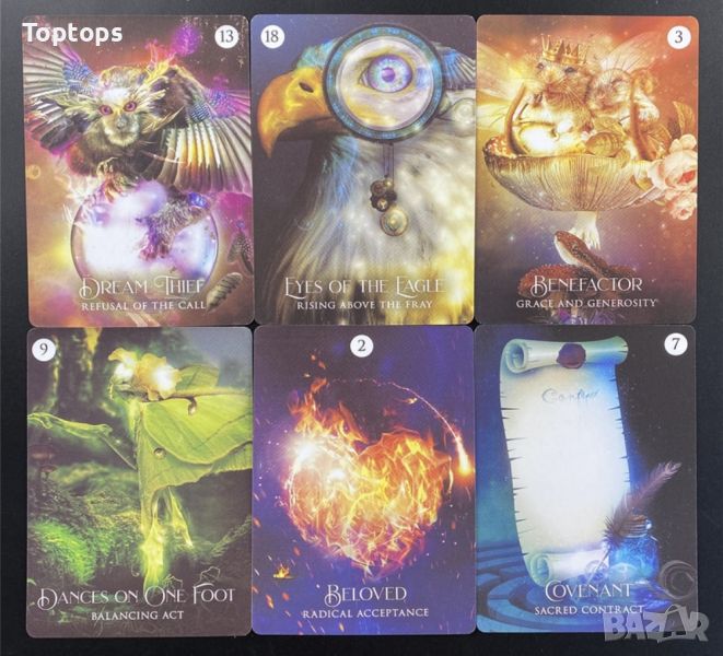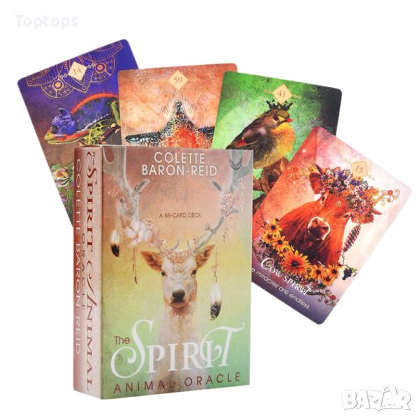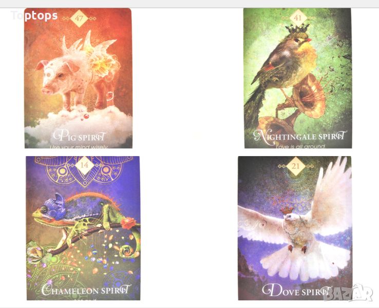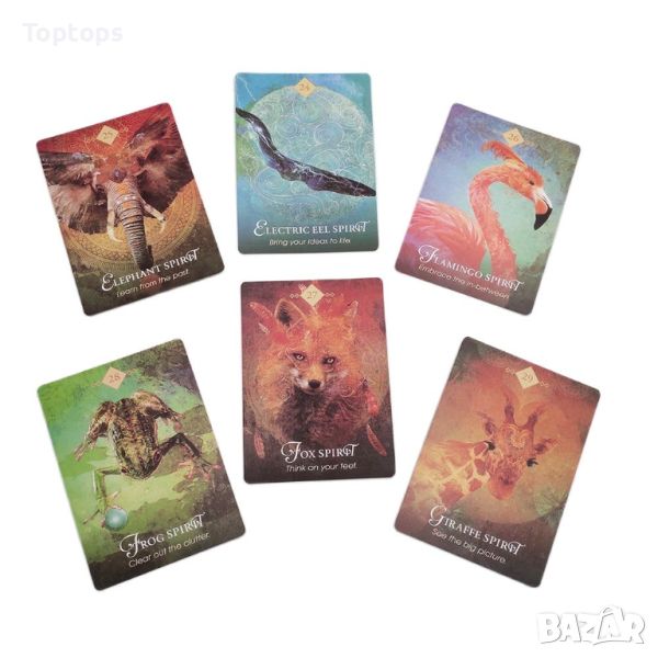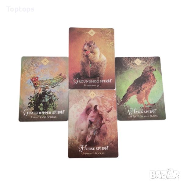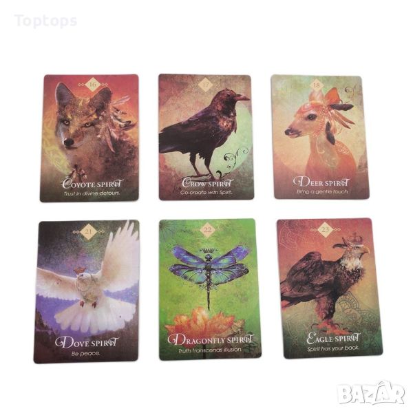 - 68 оракул таро карти Spirit Animal Oracle заедно с пдф файл с инструкции на английски. Размерът им е 10,3см х 7,5см,