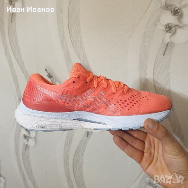 маратонки ASICS GEL-KAYANO 28 .Малко използвани , с минимални следи , без забележки .Актуален модел. Цена по магазините 360 лева .Обувката GEL-KAYANO 28 създава стабилна крачка, която ви придвижва към балансирано мислене.Снабден с по-нисък профил на външната част на петата, тази част обгръща крака ви с подобрена опора за задната част на крака.За да подобрим стабилността и отзивчивостта, добавихме омекотяване FF BLAST към междинната подметка. Осигурява гладко и поддържащо усещане при всяка стъпка.Новата GEL технологична форма на тренажора осигурява плавна крачка, което ви позволява да изпитате по-меко приземяване, без да губите скорост.Характеристика :Създадената мрежеста горна част подобрява дишанетоПреработеният външен контра на петата помага да се поддържа стабилен крак и осигурява по-удобна крачкаТехнологията DYNAMIC DUOMAX помага за намаляване на пронациятаФункцията 3D SPACE CONSTRUCTION подобрява компресията при удар с кракОмекотяването на задната и предната част на крака GEL технология осигурява отлично поглъщане на удараТехнологията FF BLAST осигурява леко омекотяване и чувствителен отскокSockline OrthoLite X-55 подобрява комфортаТапата за петата AHARPLUS подобрява издръжливостта на външната подметкаТехнологията TRUSSTIC подобрява стабилността