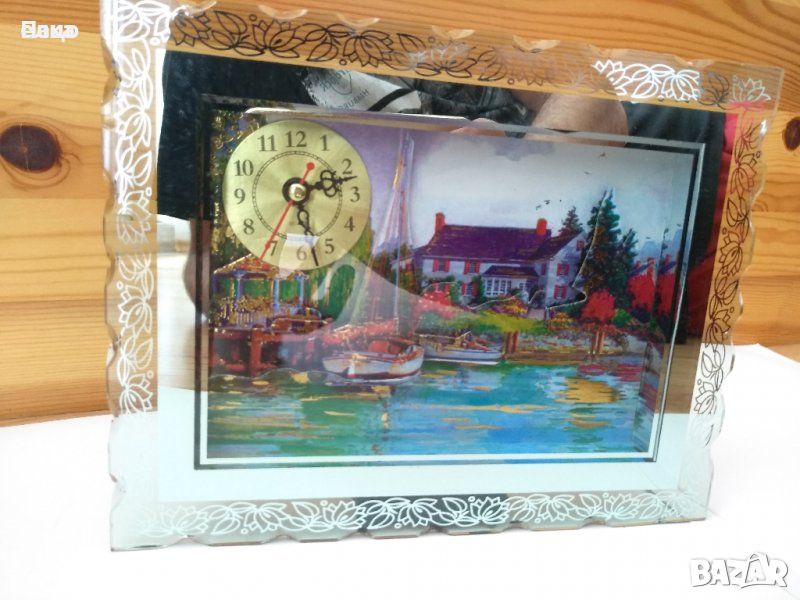 картина Река с лодки-часовник/идеален за декорация/.Стъкло рамка с размери дължина 23см/височина 17см.широчина 4 см.кварцов механизъм на часовника.Идеален за подарък.Цената е /твърда,символична