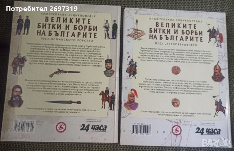 Великите битки и борби на българите през Средновековието и през Османското робство - цветно илюстровани енциклопедии с твърди корици и дебели гланцирани листове с много фотоси и карти.Цената е за 2та броя в комплект -15 евро