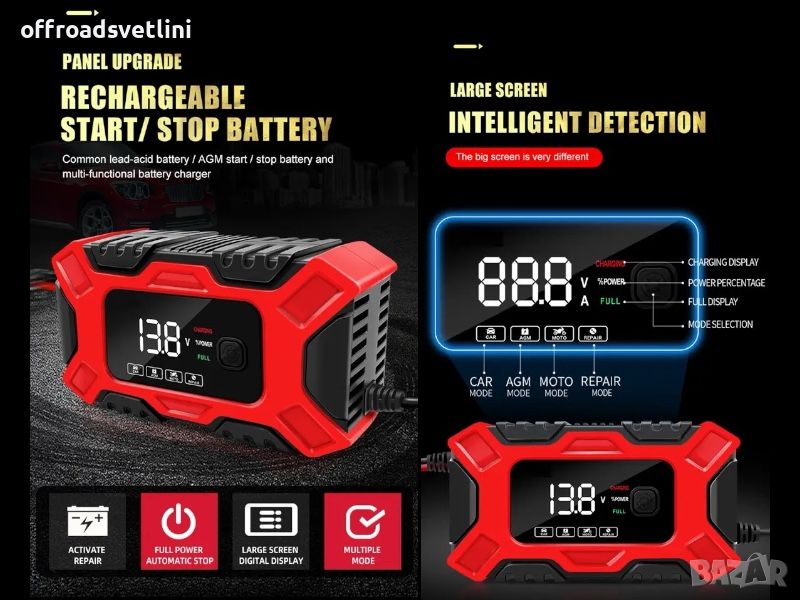 Универсално умно зарядно устройство за различни видове акумулатори на 12V с LCD дисплей.