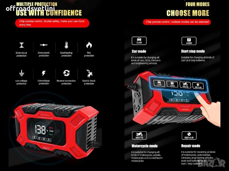 Автоматично Smart Смарт Импулсно Зарядно за Акумулатор 12V 6A