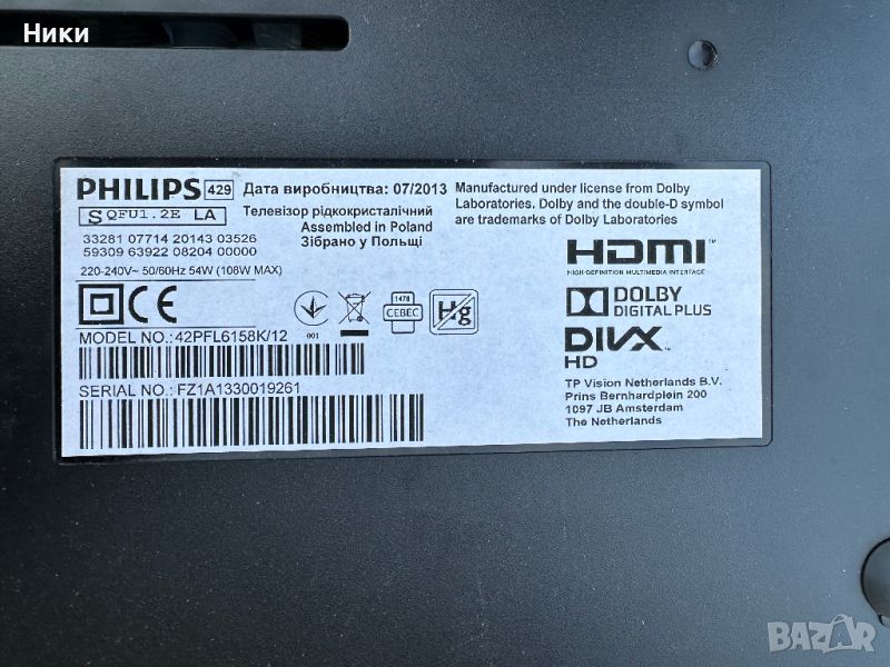 Wi-Fi модул IR Sensor WN4608B + Bluetooth Модул YKJ2081-R01 от работещ телевизор Philips 42PFL6158K/12 със счупен дисплей модела на дисплея е LC420EUF. Изпращам по ЕКОНТ с опция тест и преглед!!! С оглед и проба на това, че модулите нямат гаранция, след прегледа, теста и заплащането не приемам възражения и ракламации, щото предварително всички платки и модули са тествани и в изправно състояние се пращат!!!