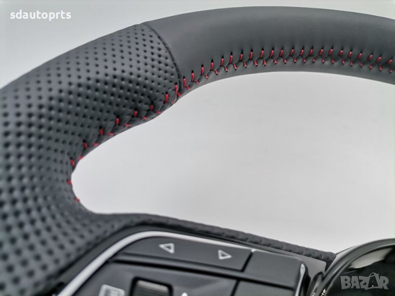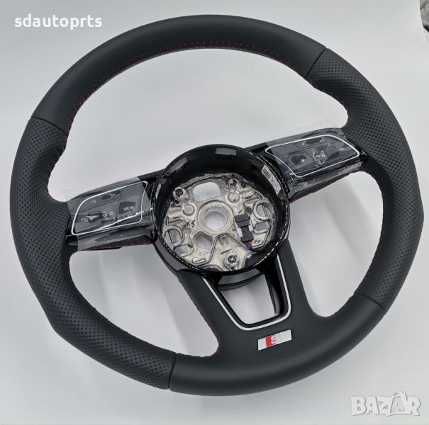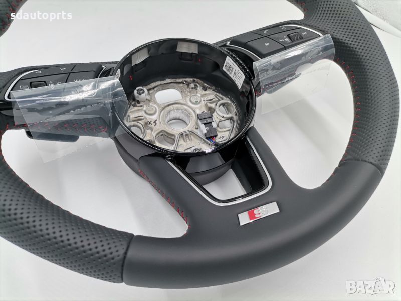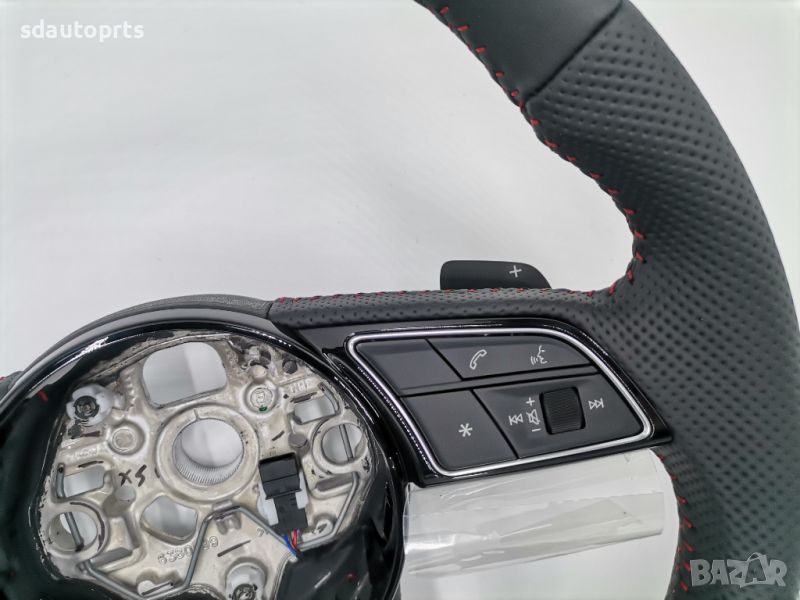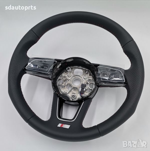 НОВ Оригинален мултифункционален волан Audi черна кожа + перфорирана черна кожа /червен шев