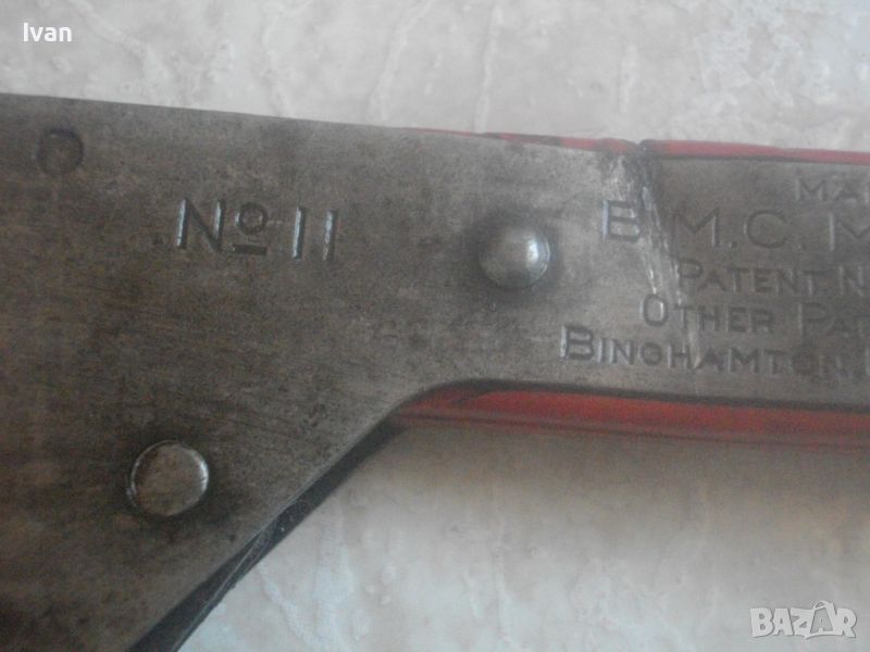 ОПИСАНИЕ на развижен ключ -американски старо качество висок клас - цена 199 лв.Професионален. Захват 1/2 зол до 1 1/2 цол. Марка/маркировки/щампи - BMC 11 - Made by BMC MFG Cprp. Patent 2388580 other Patens Pending Binohamton - N.YS. America. Отваряне реглаж на челюстите до 50 мм. Отлично мехиначни и работно състояние на ключа. Реглажа е с оразмеряване маркирано 1/2 - 1 1/2. Развижния механиизъм е с пружина отад на болта вътре в механиката. Дължина на ключа 290 мм, ширина странична 12 мм. Ключа е масивен, с тегло 1,0 кг. Цена 129 лв. Твърда/без коментар.