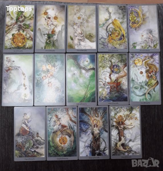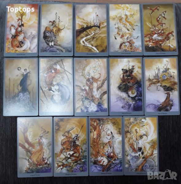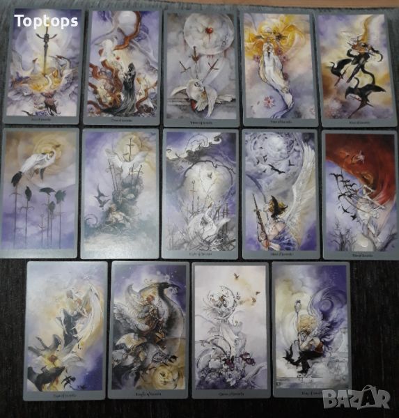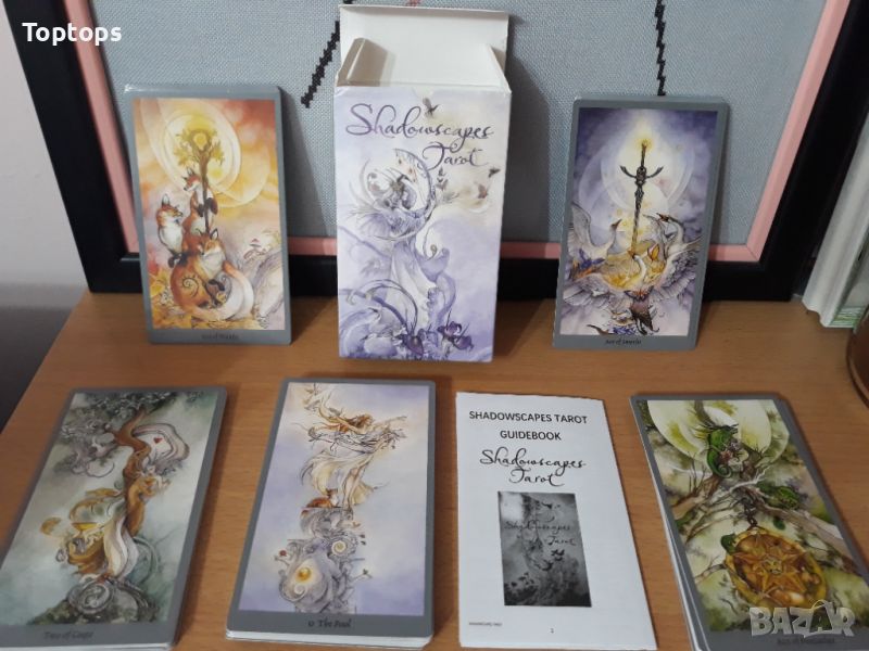 - 78 таро карти - Shadowscapes Tarot. Размерът им е 7x12cm, автор е Stephanie Pui-Mun Law.
