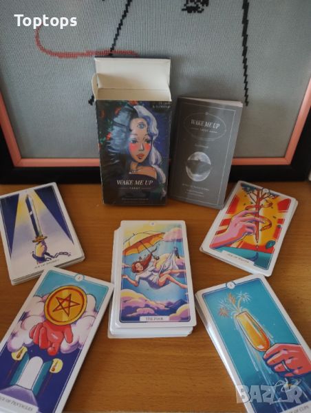 - 78 Таро карти - Wake me Up Tarot. Размерът им е 12см х 7см, колодата е създадена от Roshni Sachdev и Rattanawadee Sukapad.