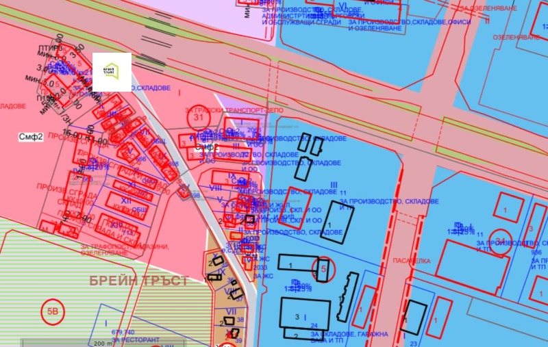 Част от парцела попада в зона Пп - 'Производствена зона' с предназначение за застрояване с производствени, складови и обслужващи сгради и съоръжения.