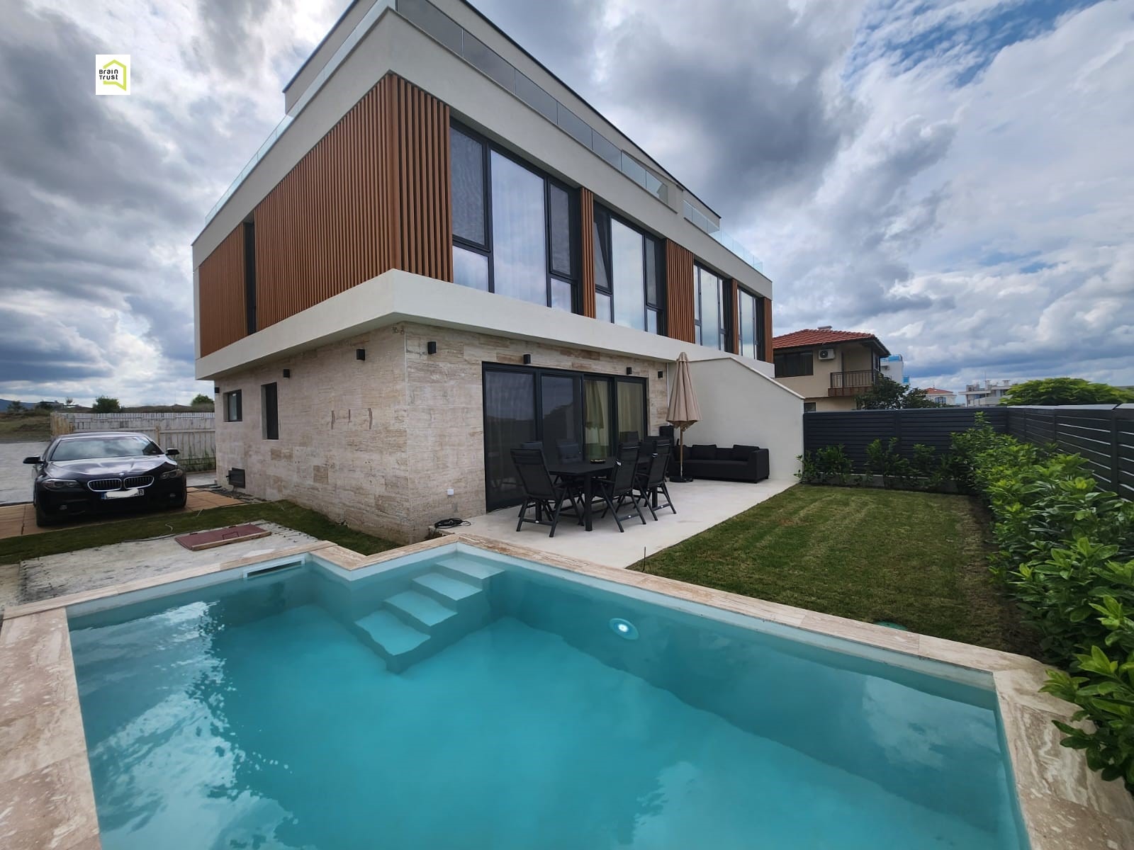 Има и басейн с размери 3,5 х 5 метра, който добавя допълнително усещане за морско преживяване към вашето ежедневие.