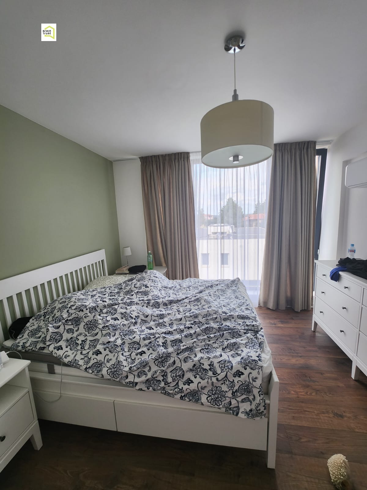 - Втори етаж: На втория етаж се намират три спални и две бани, като едната баня е отредена за родителската спалня. Тук има също и ниша за пералня и коридор.