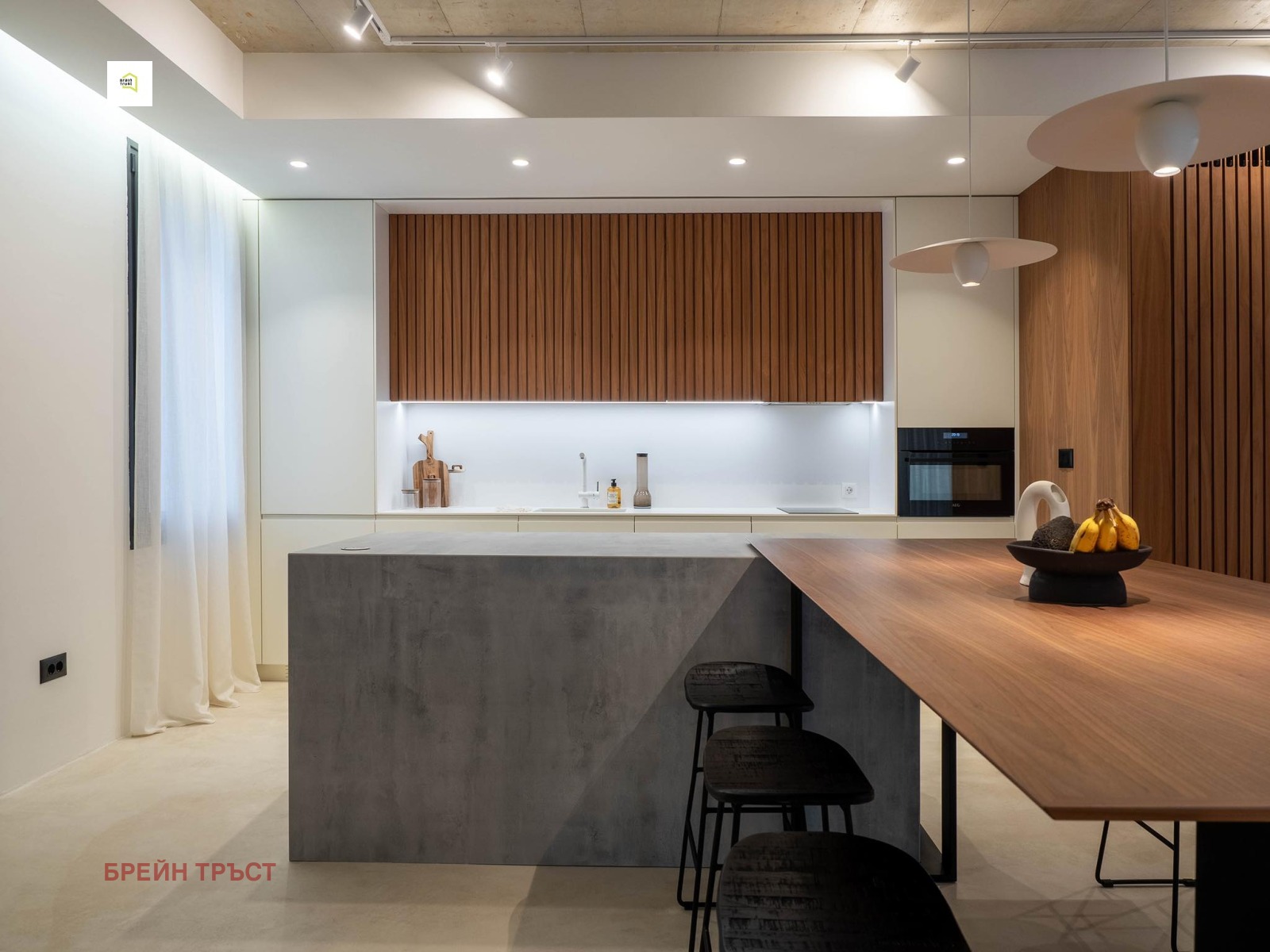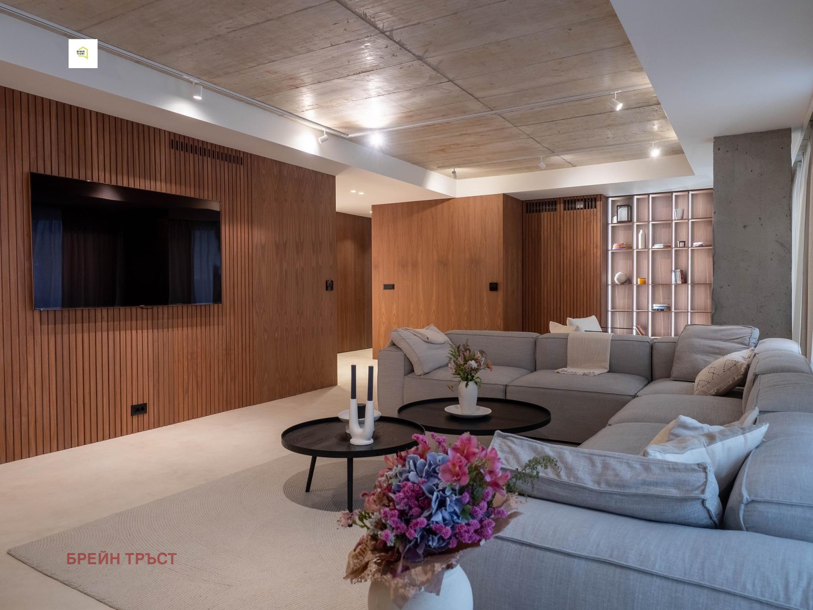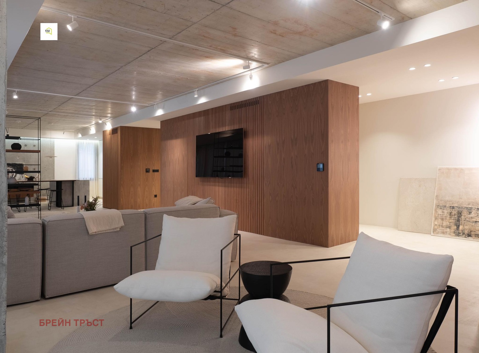 Истинският блясък на това жилище се крие във впечатляващите простори на втория етаж. Тук ще откриете втора кухня, която е снабдена с всички модерни удобства и е идеална за приготвяне на храна по време на топлите летни дни. След това можете да се насладите на великолепния летен хол, който предлага уют и релаксация, докато се наслаждавате на изгледа към красивия двор с впечатляващ басейн.