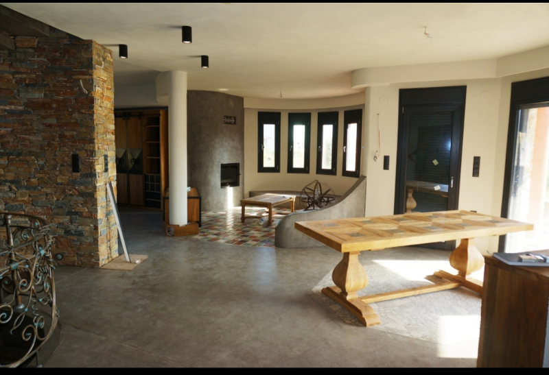 Вилата е със следното разпределение: полусутерен, спалня за гости с баня, складово помещение, фитнес зала. Приземен етаж, състоящ се от самостоятелна кухня, трапезария, две всекидневни, енергийна камина, тоалетна и килер. Вътрешно стълбище от желязо води до етаж с три спални, две бани и гардеробна. Имотът е с много добра конструкция с топлоизолация, подово отопление мраморен под, а парцелът е в близост до морето.