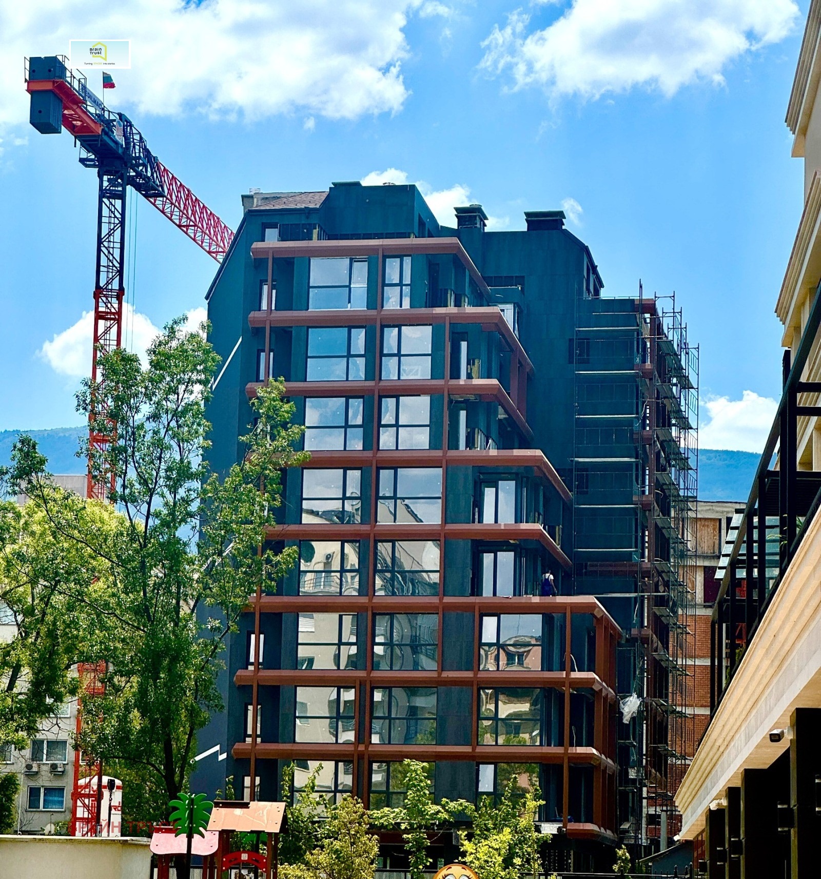 Брейн Тръст предлага за продажба 3-стаен апартамент, разположен в новострояща се сграда, разположена в източната част на квартал Манастирски ливади, в близост до МОЛ България. Сградата е като скрит оазис в квартала, притежаваща омайваща гледка към планината. Кварталът е тих и спокоен, притежаващ собствен специфичен микроклимат, чист въздух и прекрасна гледка към Витоша. В съседство се намират красиви, нови жилищни сгради, които все повече оформят облик на един нов и модерен квартал.