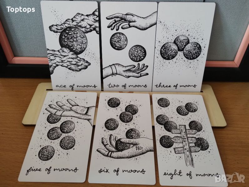 - 81 Таро карти - The Wandering Moon Tarot с хартиена книжка с указания на английски. Размерът им е 7х12см, автор е Rachael Jean.