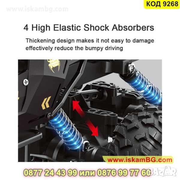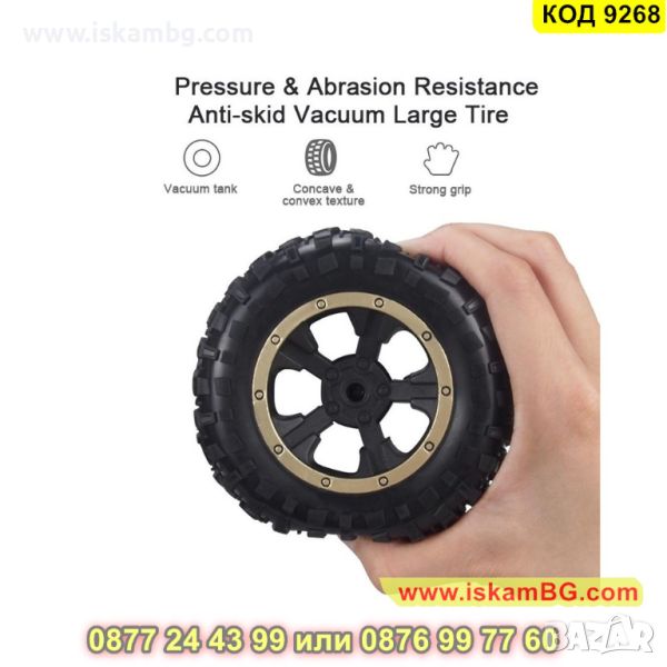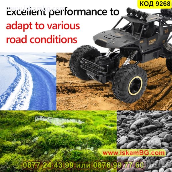 “Monster truck” е вид специализиран камион с тежкотоварно окачване, управление на четирите колела и извънгабаритни гуми, конструирани за използване на състезания и за развлечение. В световен мащаб се организират големи състезания с тези джипове и те набират голяма популярност както при възрастни, така и при деца. Този CR джип е един напълно автентичен джип от този вид, но в умален вариант и разполага с всеки един съставен елемент на своя голям предшественик. Изработен е от от метал и висококачествена подсилена ABS пластмаса в типичен за този модел дизайн - не случайно биват наричани “чудовищни джипове”. Джипът пристига в няколко цветови вариации, от които можете да избирате при поръчка - бял с червено, черен със зелено, черен мат, златен, бял, сребърен,черен със синьо. Играчката се управлява чрез радио технология 2.4 GHz посредством дистанционно, което има обхват до цели 50 метра. Това ви гарантира игра и забавление на големи и просторни терени, без да се притеснявате, че връзката между дистанционното и джипката може внезапно да се загуби. Мощната 7.2V батерия, която пристига в комплекта достига до пълен заряд за около 3 часа, но може да ви осигури 30 мин непрестанно каране. Този офроуд джип гарантира забавление за всички членове на семейството.