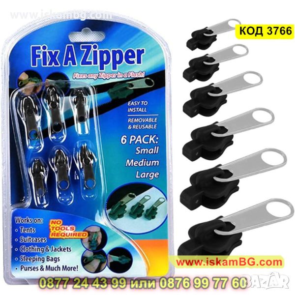 Ремонтният комплект Fix A Zipper е предназначен за оправяне на различни видове ципове, чанти и други. Той има 6 плъзгача в три размера - малък, среден и голям и е подходящ за смяна на развалените машинки – яке, раници, чанти. Този комплект е един добър помощник, който ще замени отлично работата на шивача.