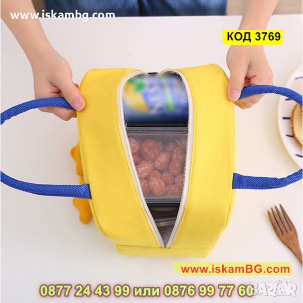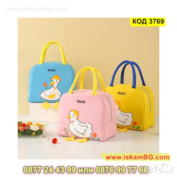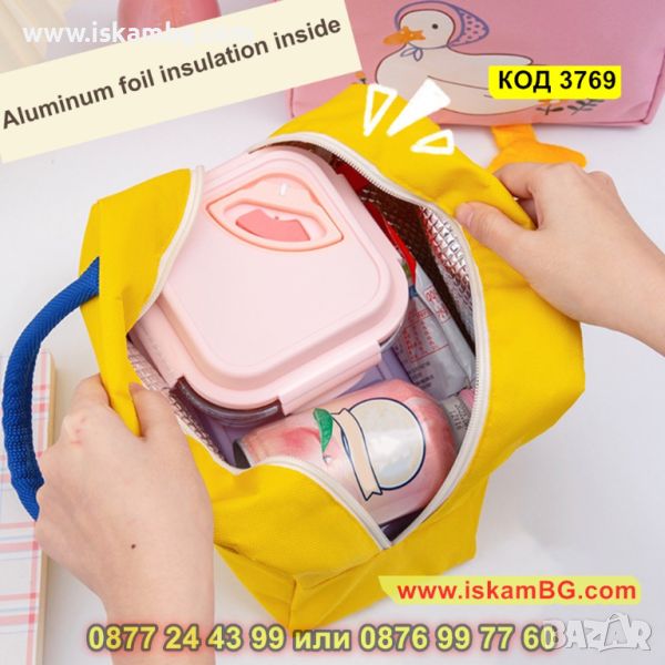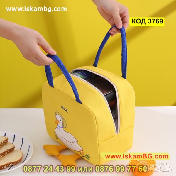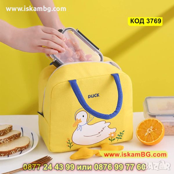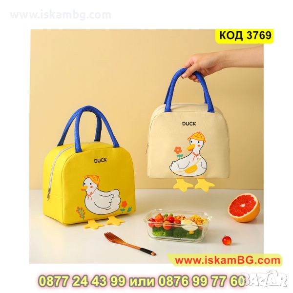 Жълта термо чанта за храна за училище, за детска кухня - "Пате с крачета" - КОД 3769