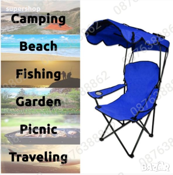 ПРОМО! Сгъваем туристически стол със сенник поставка за чаша, стол за риболов и плаж