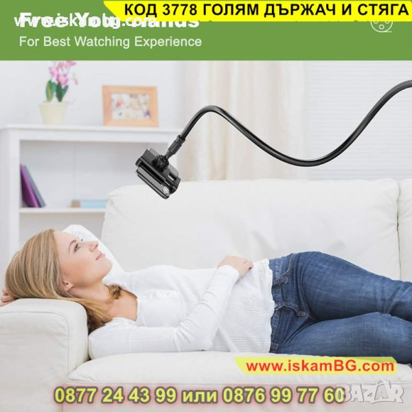 Универсалната стойка с извиващо се рамо е подходяща за телефони и таблети с размери от 12 до 18см. Изключително твърдото рамо ви гарантира, че вашия таблет или телефон няма да паднат. Независимо дали сте в кухнята, спалнята, офиса или някъде навън, можете да вземете тази стойка навсякъде с вас.