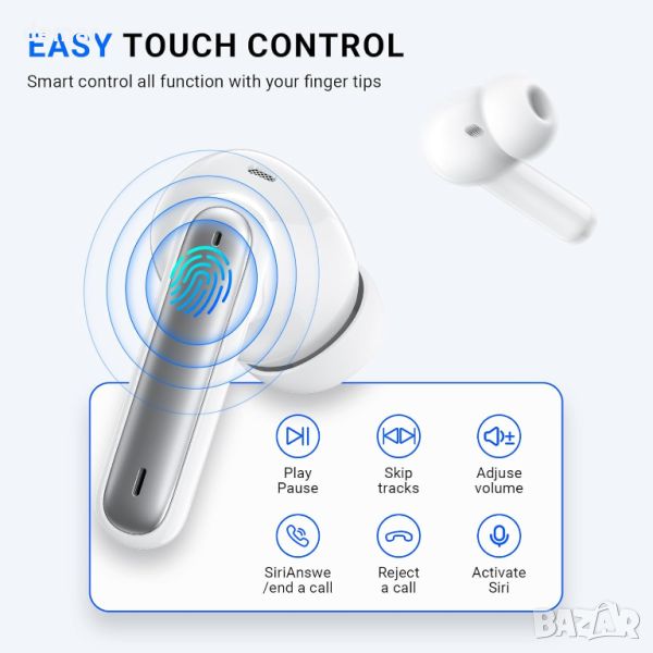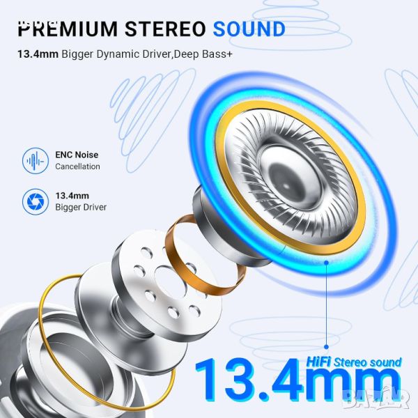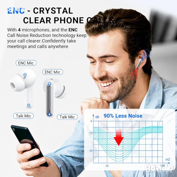 Оборудвани с усъвършенствана технология Bluetooth 5.3, тези безжични слушалки осигуряват бързо, стабилно предаване на сигнала с ниска латентност. Те разполагат с hi-fi стерео звук и ENC шумопотискане с 13,4 mm високоефективни високоговорители за ясен, балансиран звук и двоен LED дисплей за прецизно наблюдение на батерията. Предлагайки 42 часа общо време за възпроизвеждане със 7-часов живот с едно зареждане, тези слушалки са ергономично проектирани за удобство, като тежат само 4 g на слушалка. Те са IP7 водоустойчиви, което ги прави идеални за интензивни тренировки и включват интелигентни сензорни контроли за лесно управление на функции като регулиране на звука и активиране на гласов асистент.