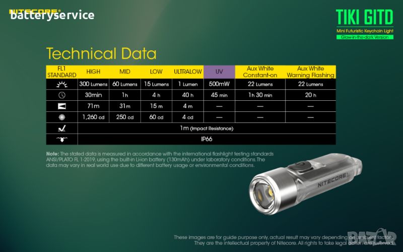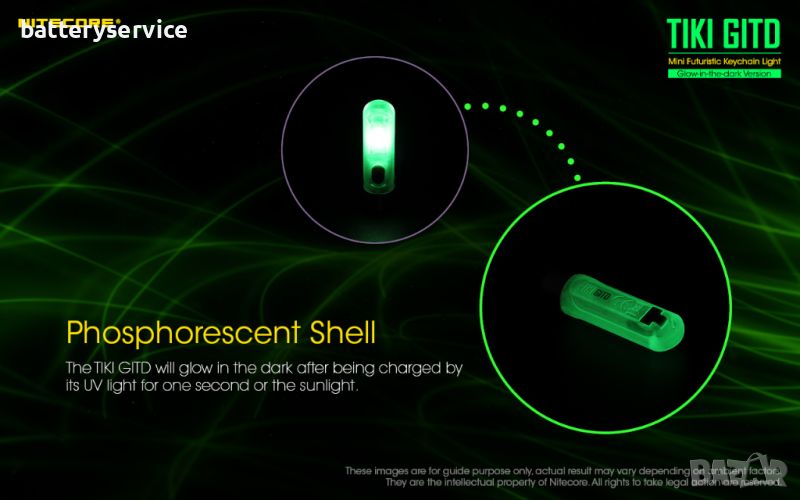Фенер за ключодържател Nitecore Tiki GITD с фосфоресцираща обвивка, която свети в тъмното