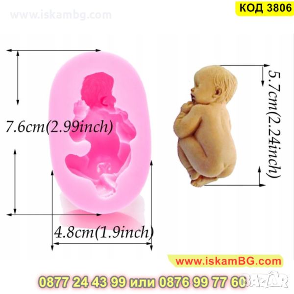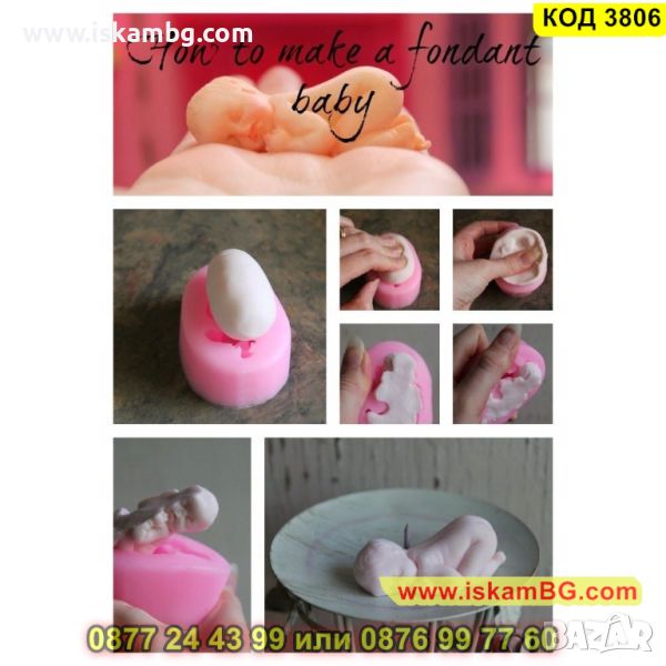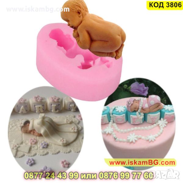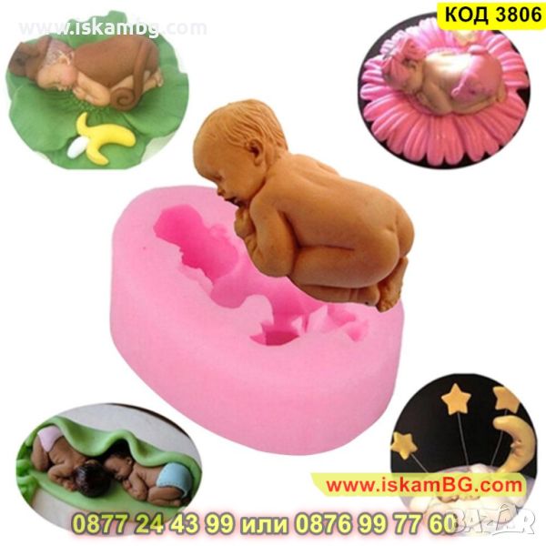 Силиконов молд за изработване на бебешка отливка Спящо бебе за декорация на торта, мъфини, меденки за бебешко парти.