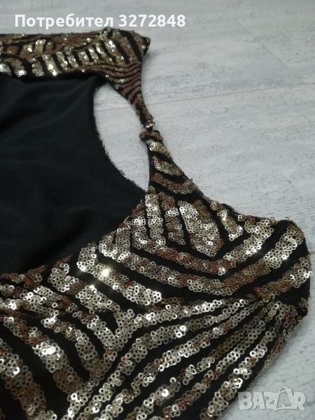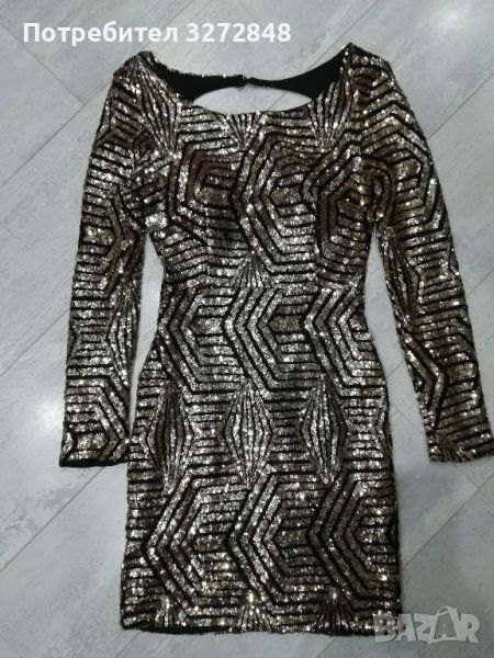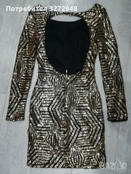 Златна паетена рокля с гол гръб → Обява 45405937