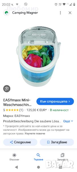 Чистото решение за бързо пране между прането или в движение! Въпреки че едва ли е по-голям от някои кухненски машини, спестяващото място помощно средство за пране ви предлага както цикъл на пране, така и цикъл на центрофугиране и място за до 3 кг пране. Той е лесен за използване и използва вода от чешмата и обикновен прах за пране. Възможен е дори цикъл на центрофугиране с 1,5 кг пране. С краен маркуч за изпразване на машината и входящ маркуч за пълнене. Идеален за къмпинг, в движение и за единични и студентски домакинства.