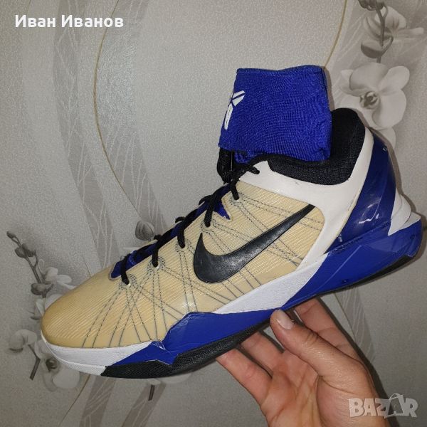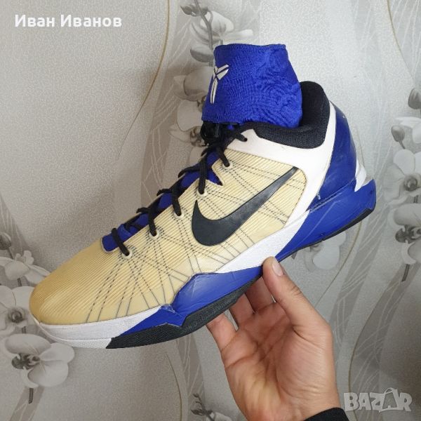 Nike Zoom Kobe 7 Supreme 'Concord номер 48,5 Използвани , с минимални следи , без сериозни забележки и без изтърквания по подметките Само за фенове на баскетбола и вечния Коби БрайънтКрасиви , модерни , удобниПоддържайки ниското изрязване, което се превърна в основен елемент в линията Kobe от IV, Kobe VII разполага с технология Flywire, Zoom Air омекотяване, преувеличен външен контраток на петата и уникална подвижна вътрешна обувка, която позволява на потребителя да персонализира своята форма