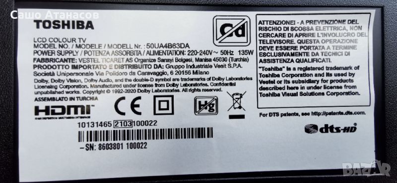 TOSHIBA 50UA4B63DA със счупена матрица ,17IPS72 ,17MB170 ,VES500QNZP-N4-Z03 ,PD9254A2A-V1.1 ,17WFM25