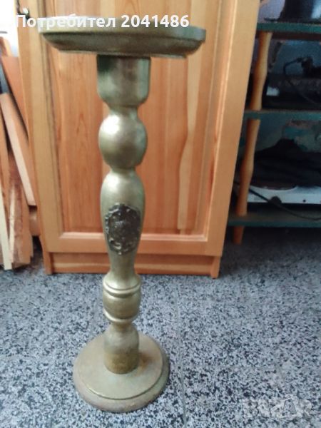 Реновиран колекционерски дървен цветарник с метална апликация.Височина 62см и диаметър 21.В много добро състояние.Поглвднете и другите ми обяви.Благодаря за интереса.