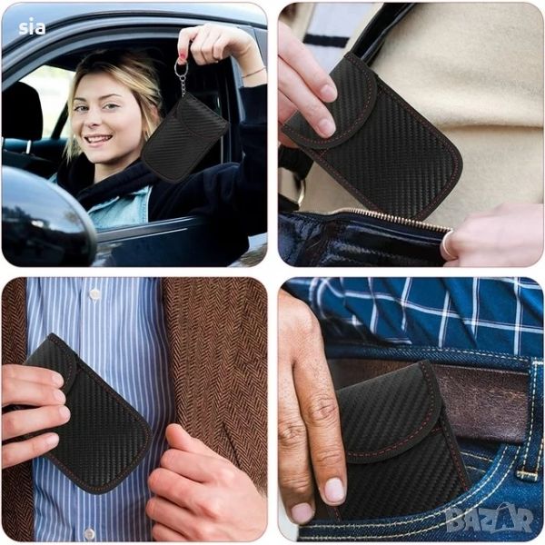 За да защитите колата, поставете ключовете в горния джоб със сребриста подплата.От своя страна долната ви позволява да установите сигнал с автомобила, благодарение на който се използва за съхранение на ключове по време на шофиране.