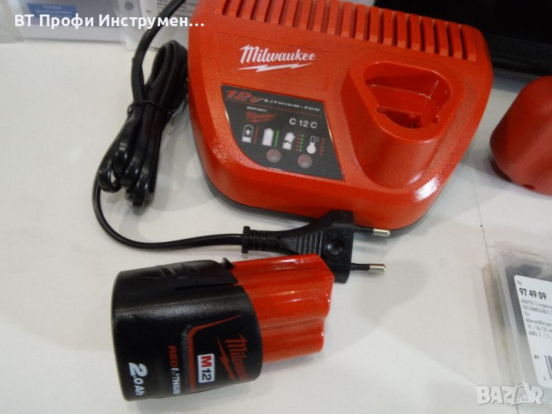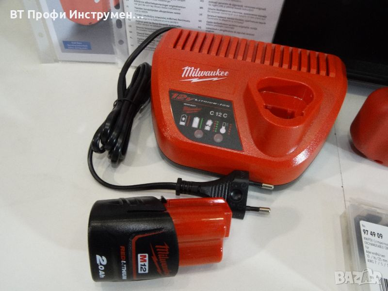 Мощна литиево-йонна акумулаторна батерия (12 V; 2.0 Ah; 24 Wh); време на зареждане прибл. 38 мин; няма ефект на паметта.