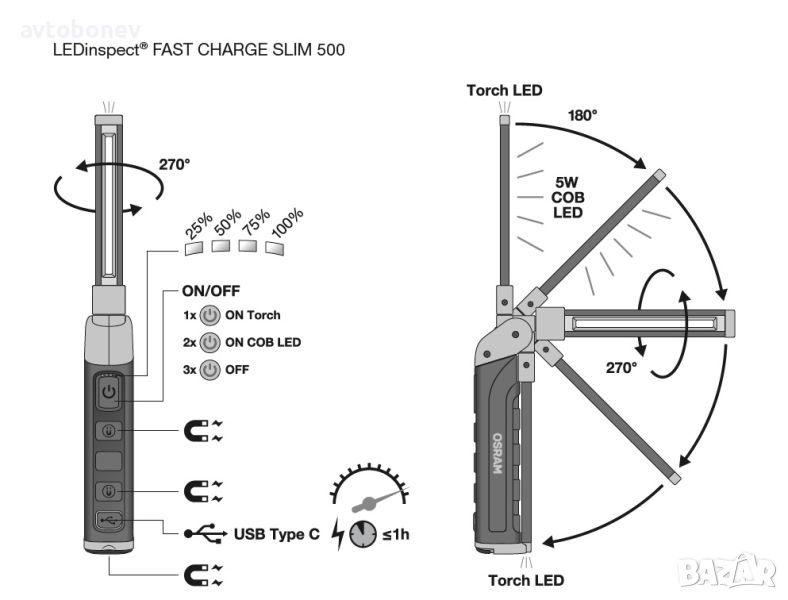 OSRAM LEDinspect FAST CHARGE SLIM500(LEDIL406)-висококачествена, мощна и надеждна работна лампа от OSRAM идеална за професионална и лична употреба.