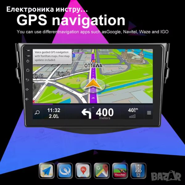 - Могат да се инсалират всички навигации съвместими с Андроид или да се използва GOOGLE Maps Навигация