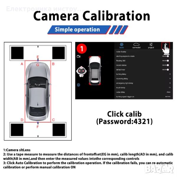 4 x 360 Bird View система за камери без коригираща кърпа (A3190)/с 2x коригираща кърпа (A3055)