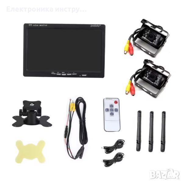 Супер цена! Безжичен висококачествен комплект 7 ″ LCD монитор с две безжични камери 18 LED IR за нощно виждане и дистанционно.
