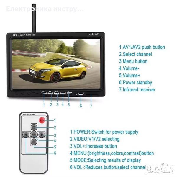2,4GHz аналогов безжичен 7-инчов монитор