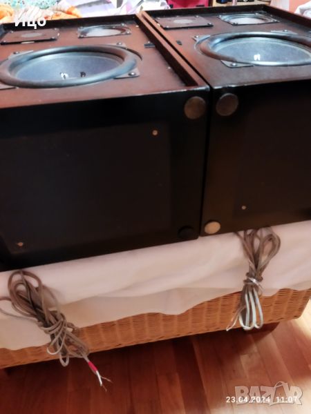 Марка неизвестна.здрави лакирани тежки кутии.Звука от тях е впечатляващ,и чист.Сменени професионално само гънки на 8 инча баси.Предпочитам тест на място и лично предаване.Може и куриер но са тежки.
