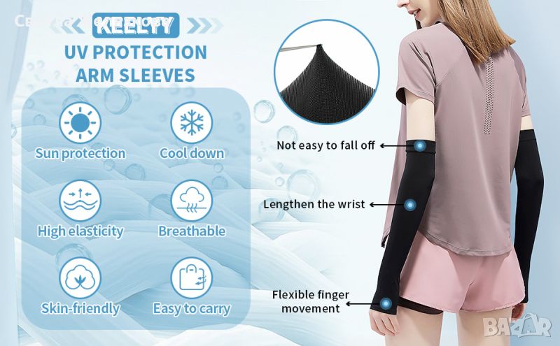 Ръкавите за охлаждане са изработени от високо дишащи материали и меки и леки тъкани, не дразнят кожата, имат отлична дишаемост и не са задушаващи при носене в горещо време, бързо абсорбират потта и я изсушават, като поддържат кожата свежа.