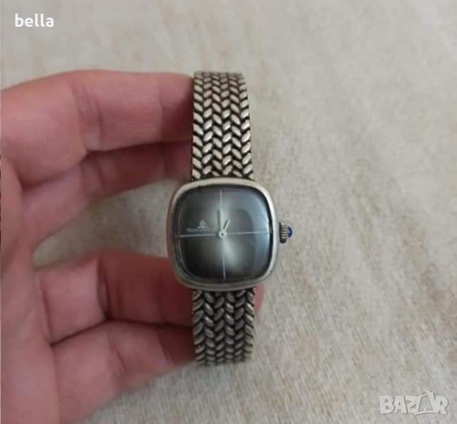 BAUME & MERCIER-Сребърен дамски часовник,сребърна верижка с интересна масивна плетка ,капсулован механизъм,работещ отлично,проба 800,маркировки навсякъде ,леки драскотини по стъклото но това се полира,цена 450 лв,цената не се коментира