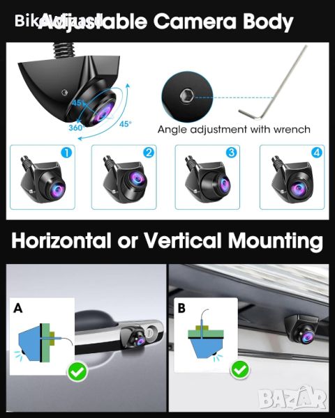 AHD резервна камера за автомобил, проектирана с чип на sony, голяма бленда F1.8, 6 стъклени лещи и WDR технология за осигуряване на висока чувствителност и пропускане на светлина, която показва ясни и истински цветове при слаба светлина условия, осигурява отлично нощно виждане. Комбинирайте с ъпгрейд 170° по-широк зрителен ъгъл, резервна камера за камион покрива повечето зони на мъртвата точка, предлага перфектен изглед при паркиране през нощта. 【𝐈𝐏𝟔𝟗𝐊 𝐖𝐚𝐭𝐞𝐫𝐩𝐫𝐨𝐨𝐟 &𝟏𝟐-𝟐𝟒𝐕 𝐂𝐨𝐦𝐩𝐚𝐭𝐢𝐛 𝐥𝐞】Камерата за заден ход за автомобили поддържа IP69K водоустойчива и прахоустойчива.Камерата за заден ход за автомобил, проектирана със стандартна RCA връзка, работи с вашите главни устройства или вторичен LCD/TFT дисплей s, който има RCA вход,