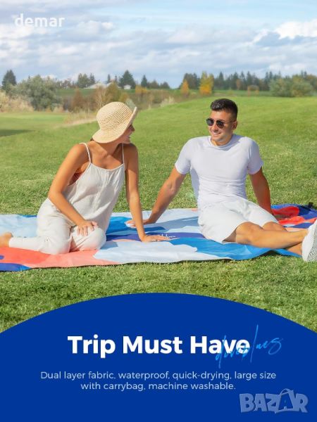 Одеяло за пикник Diveblues, двуслойно водоустойчиво одеяло за пътуване, 175x175CM