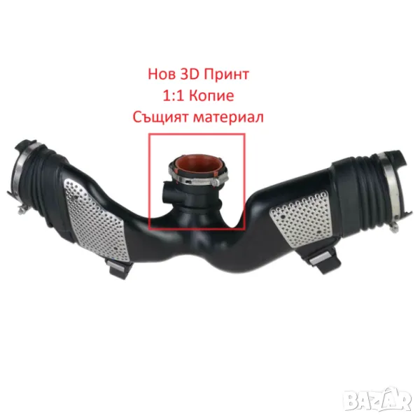 Предлага се комплект за ремонт на въздуховод "лястовицата" за двигатели Мерцедес ОМ642 ( дебитомери ) за бензин или дизел. Тази част е изработена на 3D принтер от материал PA6CF15, който е найлон с добавени 15% карбонови нишки. Найлонът е един от най-здравите материали за 3D печат, а добавките от карбонови или стъклени влакна увеличават неговите свойства до два пъти. Материалът е термоустойчив (HDT термично съпротивление - 180°C при 0.45MPa), а добавките от карбонови влакна придават допълнителна здравина и отлична химическа устойчивост.