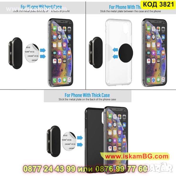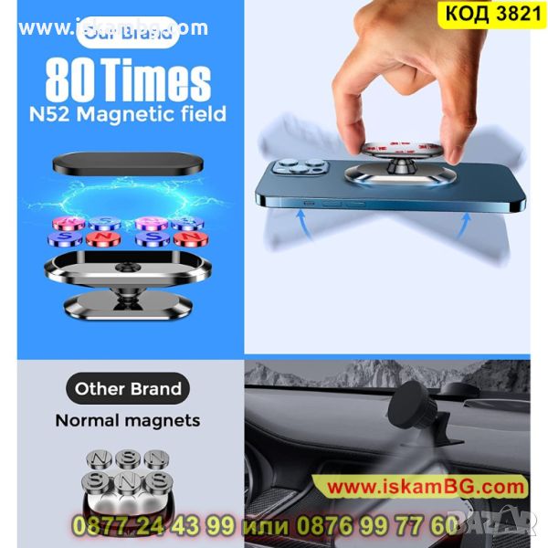 Магнитната поставка за телефон, която Ви предлагаме, притежава регулируема глава, въртяща се на 360 градуса, което позволява да поставите телефона си под желания от Вас ъгъл, така че да не пречи докато шофирате. Поставя се лесно – с помощта на лепяща лепенка 3M VHB. Можете да го прикрепите навсякъде по Вашето автомобилното табло: от лявата страна на волана, до предното стъкло, по-близо до радиото или седалката на шофьора.