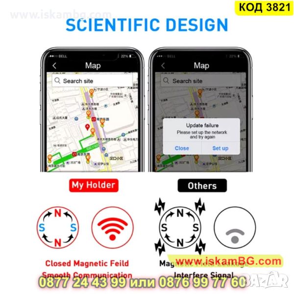 Магнитна поставка за телефон с въртящо рамо и регулируема глава - КОД 3821